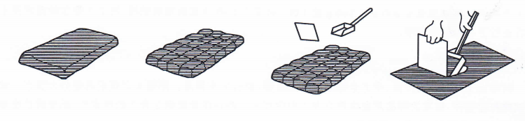 4.2.4棋盤法:適用于鋸屑和其他能用鏟勺處理的小顆粒樣品。將全部樣品置于清潔并堅硬的表面上并用鏟勺混勻。用鏟勺將樣品散布成長方形堆,堆的厚度不超過物料標(biāo)稱最大粒度的3倍,用鏟勺在長方形堆的表面上輕輕劃線,分割出不少于20個部分。用鏟勺和擋板從20個部分中的每一部分取子樣,每次取樣鏟勺都插入到堆的底部。結(jié)合子樣到所需量的試樣。